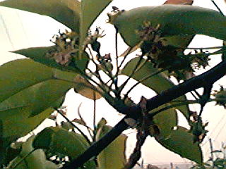 H17.5.19 摘果作業中です。受粉が上手く行ったものから1果残して摘み取ります。